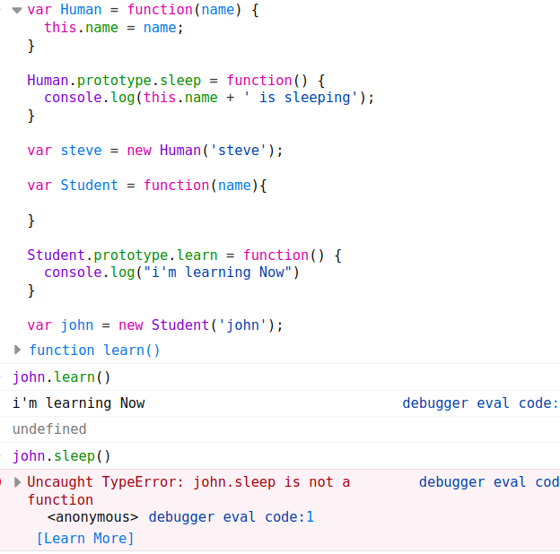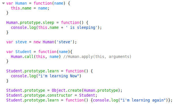 여기에서, Student.prototype에 Human.prototype 객체를 할당해준다.
