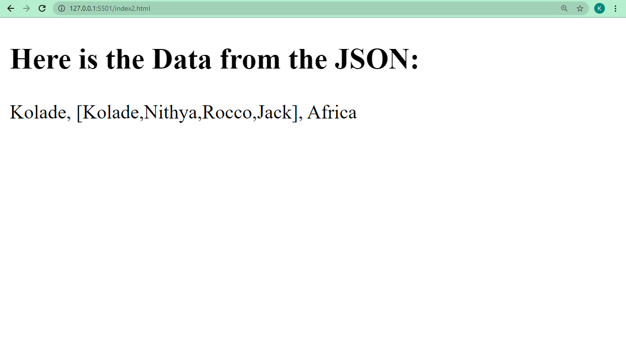 '{"name": "Kolade", "favFriends": ["Kolade", "Nithya", "Rocco", "Jack"], "from": "Africa"}';